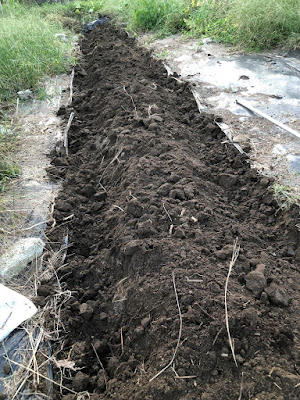 マルチを剥いで、ここに3列の畝を作るのだが、まずは真ん中の畝を耕した。