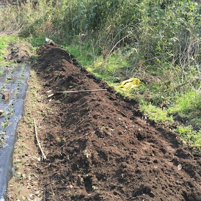 新たに出来たスペースには、小さな畝を作って、この冬人気が出てきたヤーコンの余った種芋を追加植えした。