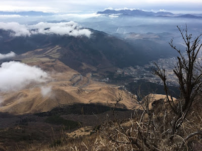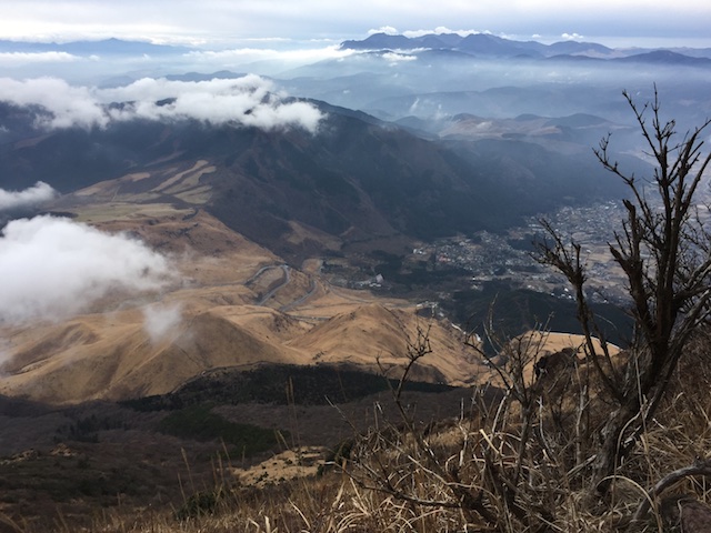 右手下には湯布院の街、上には久住の山々が見える |