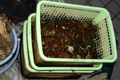 この3段重ねのミミズ小屋も、これまでの最下段が新たに最上段として新しい餌を入れられながら新しいサイクルに入る。
