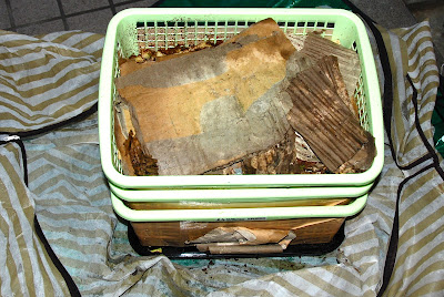 箱形3段重ねミミズ小屋の防虫用に包んでいた座布団収納袋がかなり破れていた。
