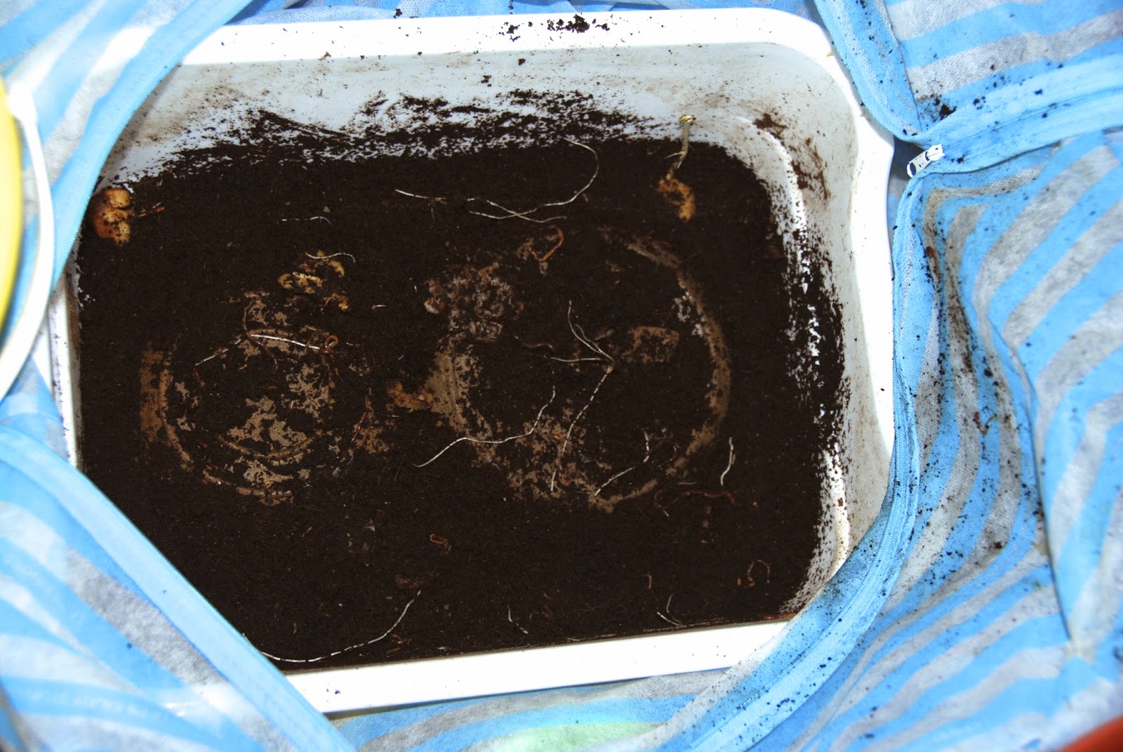 ミミズに与えた餌は、ともするとこのように芽や根を出してくる。