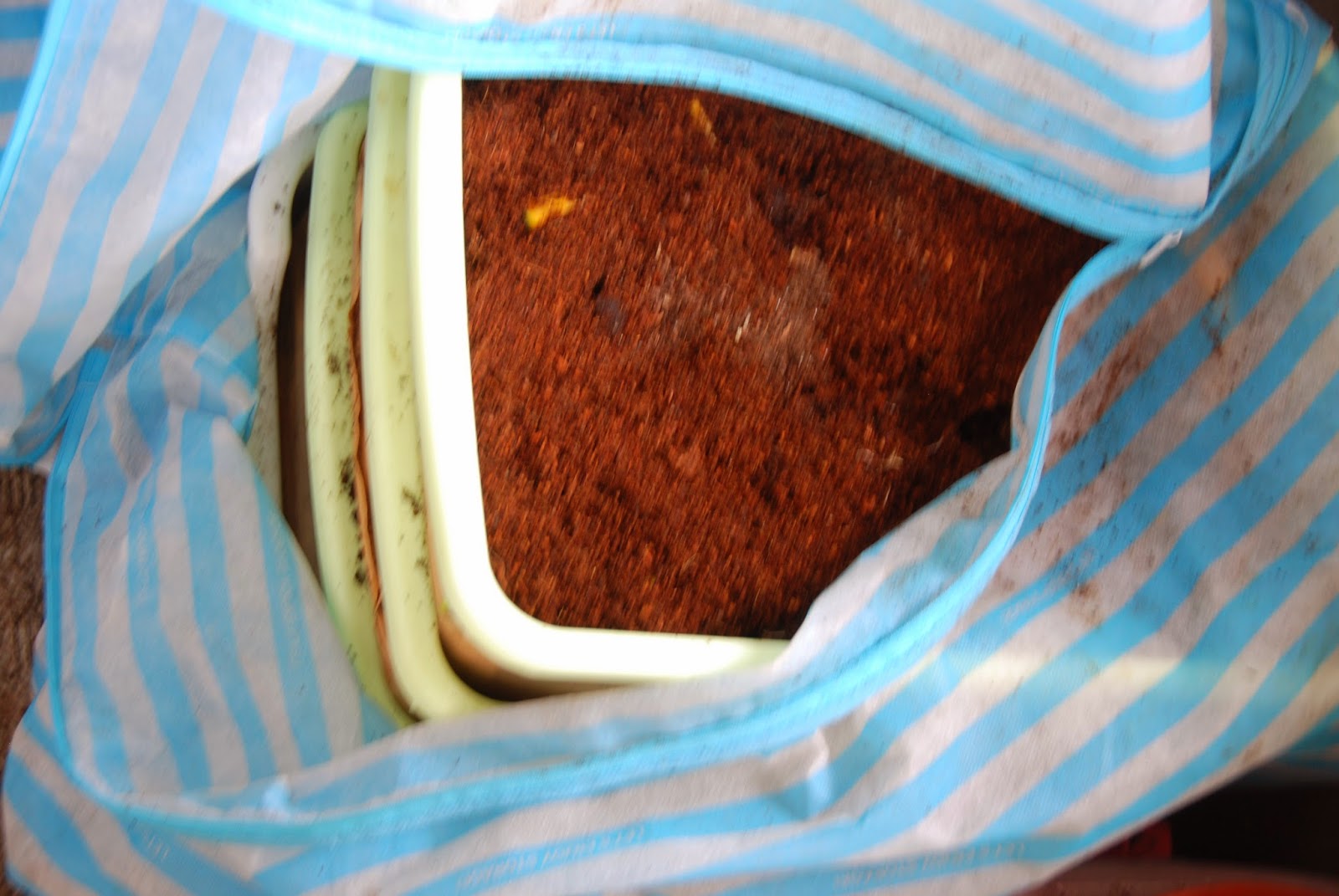 新たに入れたココ繊維はこんな茶色い色をしているのだ。