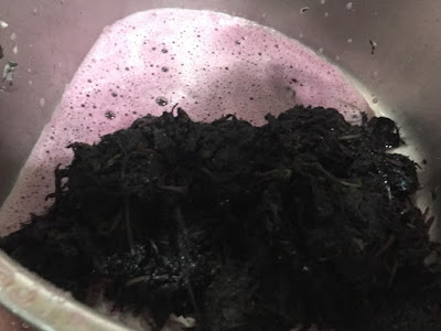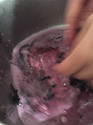 紫蘇を絞ると、今度は真っ赤に染まったきれいな汁が出る。