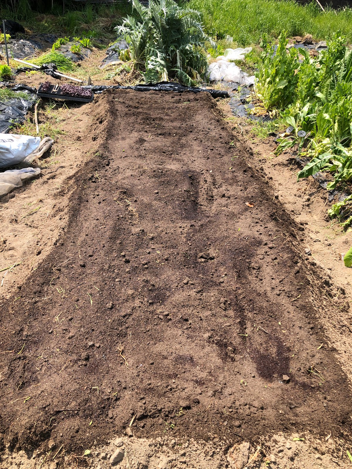 まずは、目的の場所を除草して鍬で耕すとこんな感じ。
