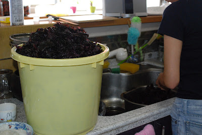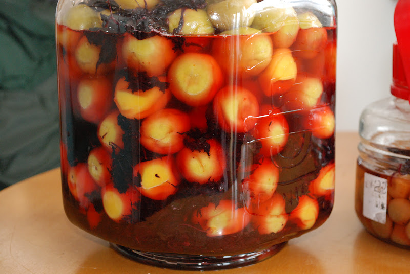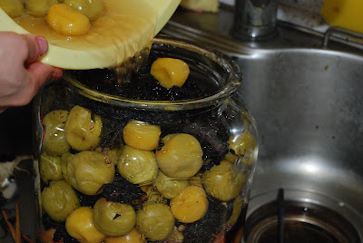 さあ、樽から瓶に梅と紫蘇を移し、最後に梅酢を入れていく