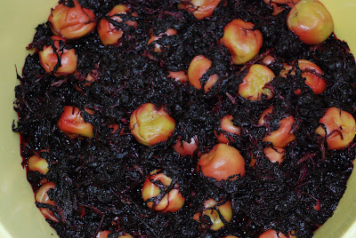 そして、紫蘇を漬け込んで1時間、次第に色付き始め
