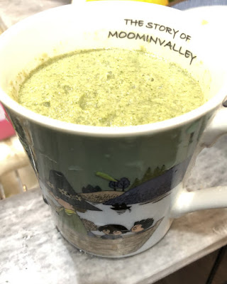 | ジュースというよりスムージーだ。 リンゴがあればもっと美味しくなったに違いない。 |