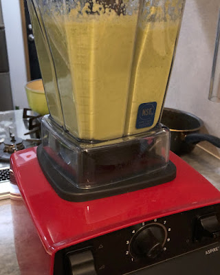 | 牛乳も加えVitamixで一瞬で出来上がり。 |