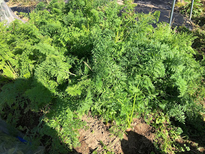 | 手前の方が収穫が終わった場所。 こんな小さな畝数カ所に時間差でニンジンが育っている。 |