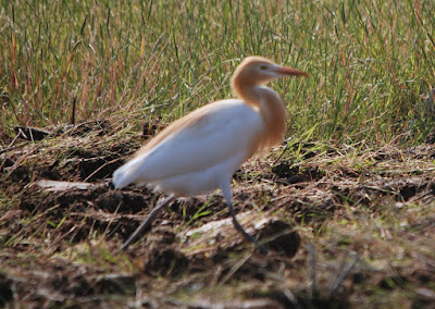 | アオサギやシラサギは年中見かけるが、アマサギはこの時期しか確認できない。 アマサギの姿を見ると何となく嬉しくなる。 |