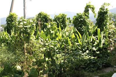 昨年のツクネ芋が育つ過程では非常にいい感じで、8月の終わりには蔓や葉が見事に茂っていた。