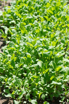 | このルッコラの畝は、マルチも虫除けネットもしていない。
