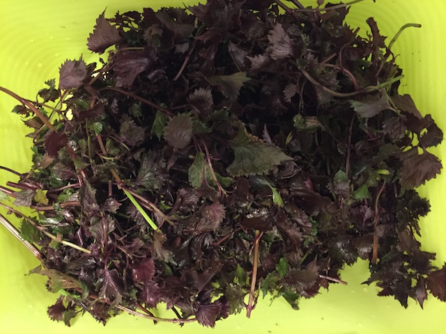 そこに残っていた紫蘇の苗には、まだ葉が茂ってきていたので、今年3回目、正真正銘今年最後の紫蘇ジュース作りのための収穫と相成った。