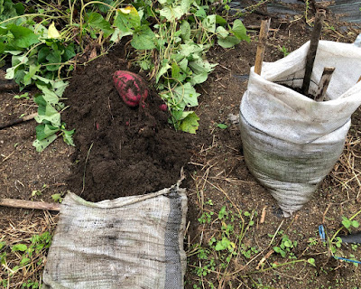 サツマイモの収穫は土嚢袋を一袋ひっくり返した。
