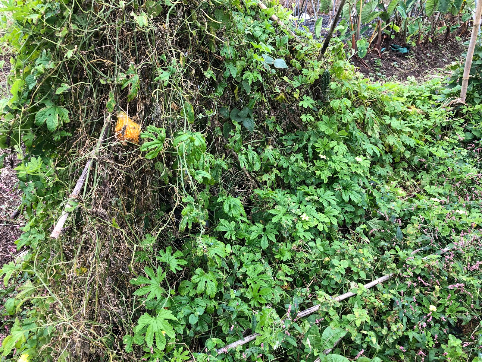 さて、こちらは台風の時に支柱が倒れた四角豆。