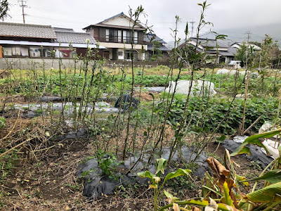 この小さな3列並ぶ畝に林立しているオクラの苗は、最盛期にはその葉で隠れて奥の景色が見えないくらいだった。