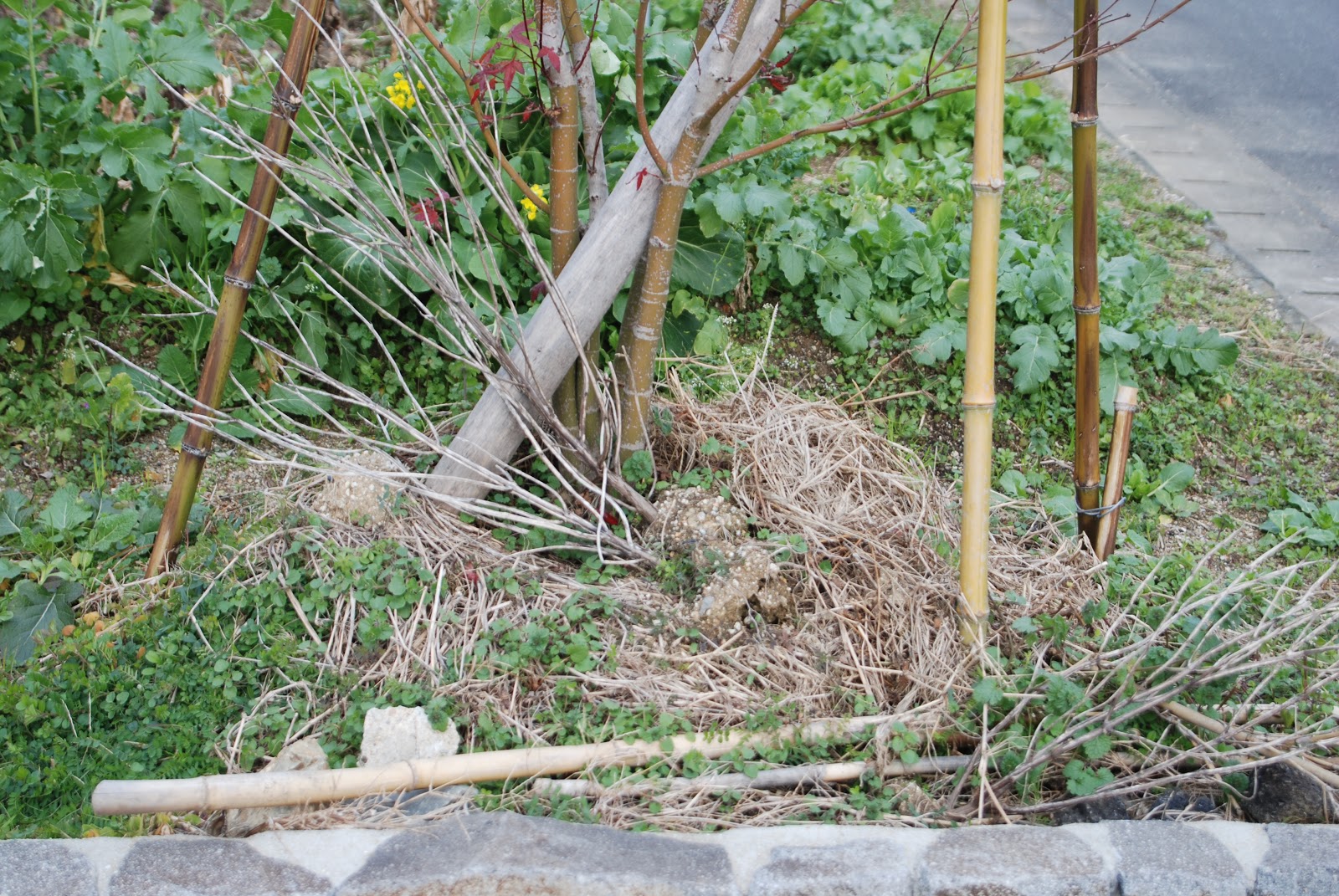 竹や色々な草木の残骸が散らかっていた。これらを片付けて