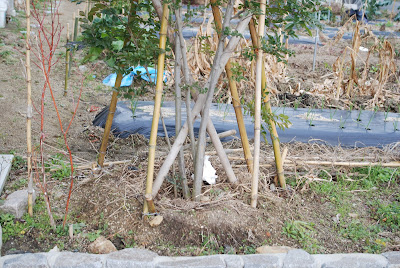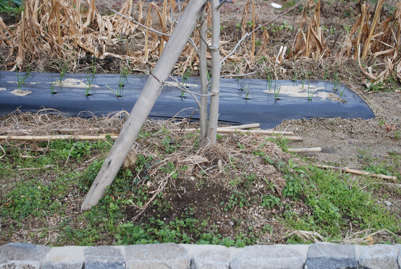 ということで今日、4本のシンボルツリーの根元に福袋に入っていた球根の植え付けをおこなった。