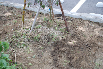 水仙やアイリスなんかを植えてみた。下の写真は植えたあと反対側から見たところ。シマトネリコはかなり広い範囲に根が張っていた。結構強い樹木なのだ!
