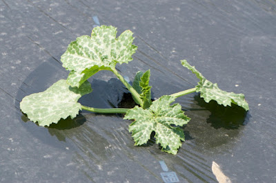 日本でもよく見られる緑ズッキーニは、その特徴的な硬そうな葉で、苗を見ただけでそれと分かる。