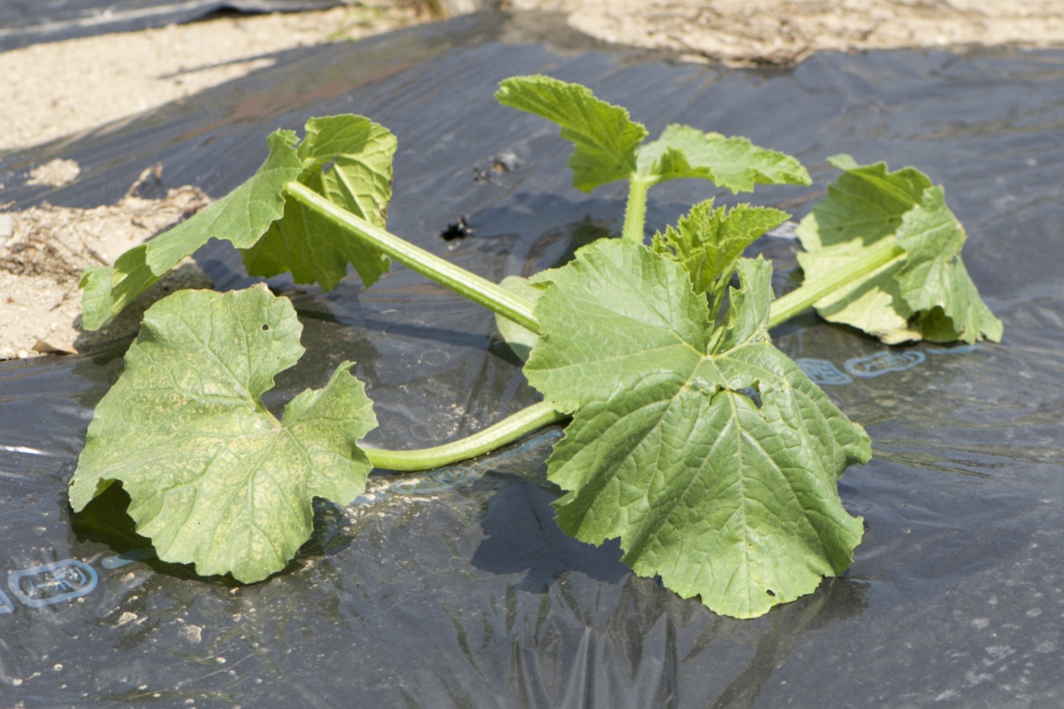 日本でもよく見られる緑ズッキーニは、その特徴的な硬そうな葉で、苗を見ただけでそれと分かる。