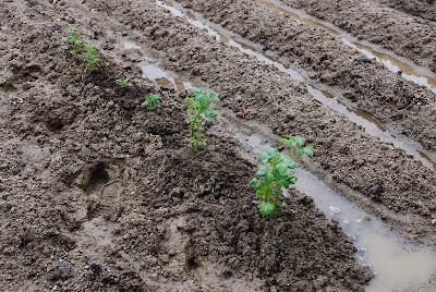 ジャガイモの芽出し実験をチェックしたあと、芽出し実験に使ったジャガイモを移植した。