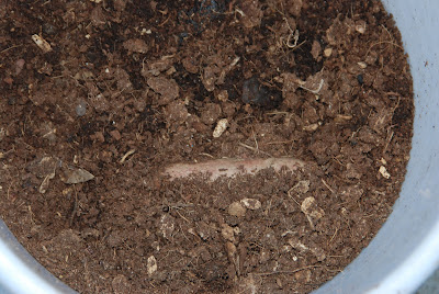 そこで、この芽が出たサツマイモをミミズ堆肥の中に入れてみた。