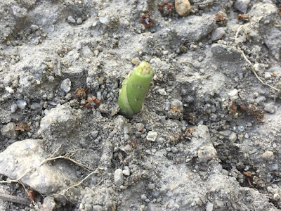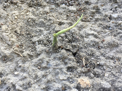 | こちらでは、出てきた芽が、途中で折れ曲がっている。 こんな感じの、芽の出方は以前もよく芽にした。 |