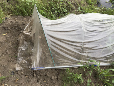 今年はせめて、芽出しをうまくさせようと、2/3はビニールトンネルの中のミミズ堆肥を入れた容器で、そして1/3はビニールトンネルの中の土に直接植えてみた。