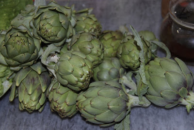 | こちらは今日収穫したアーティチョーク。 最初の頃より蕾の大きさは小さくなったが、まだ収穫できる数は多い。 |