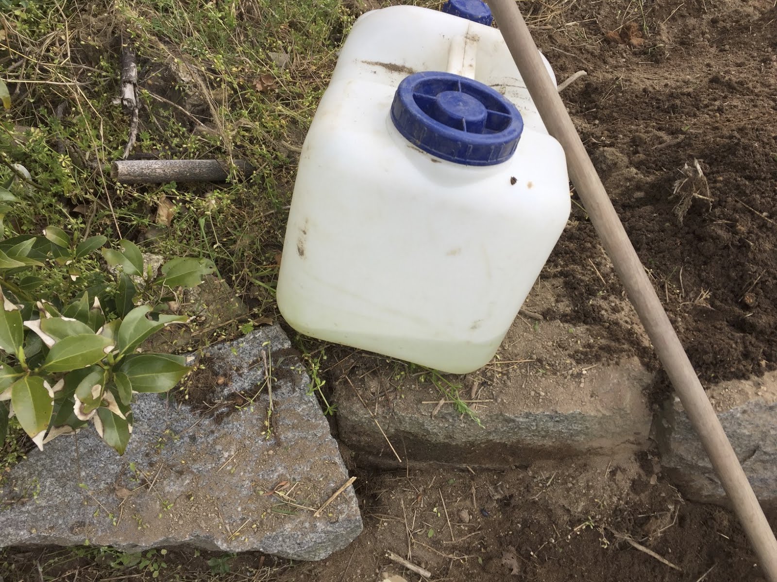 これまでの2年と今年の大きな違いは、すぐ側に20Lの水の入ったポリタンクを置いていること。
