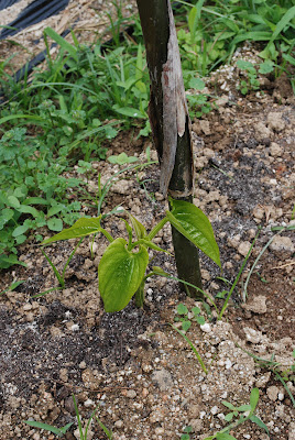 ミミズ堆肥ですべてを発芽させたが発芽率は5/10=50%しかなかった。あまりたくさん発芽してきても植える場所に困ってしまうが今回は発芽したものをすべて畑に植えた。