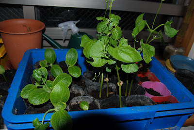 | モロッコはもう畑に植えて良さそうだ。こちらも明日植えてみよう。 左のズッキーニは畑に植えるには少し早そうだが、こちらも2本だけ植えてみよう |