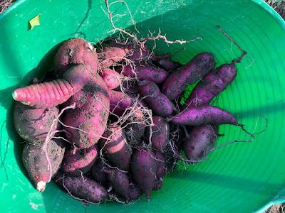サツマイモは霜被害が出ると、収穫した芋も腐れ易くなるとのことなので、第2菜園の芋はすべて掘り起こした。