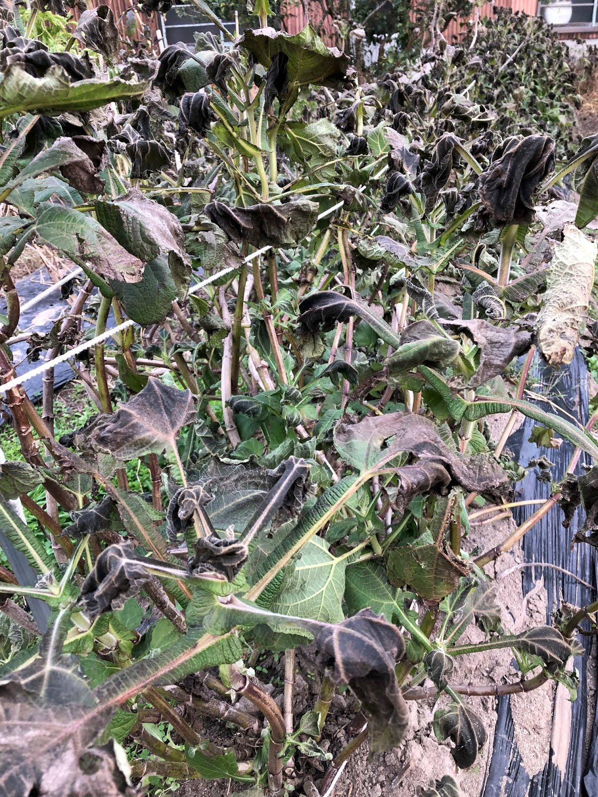 そして第1菜園の土嚢袋は、まだ霜被害がひどくないので、次回の収穫に回しておいた。