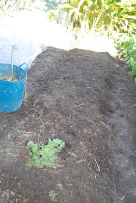 そして、もう1列の畝には、冬用野菜の小さな苗を、いつでも移植出来るようにと、パオパオを掛けておいた。