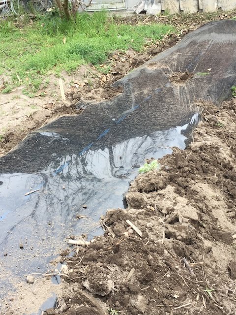 で、耕した後、マルチを掛けた。