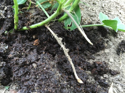 子房柄は、柔らかい堆肥をから土の中へと、きっとうまく潜っていくはずだ。
