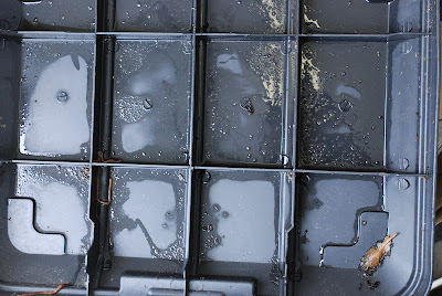 雨が降り込みにくい場所に置いたつもりだったが、さすがにこの時期、蓋はしっかりしていても4mm程の穴、30個あれば降り込む雨を予防出来なかったみたいだ。