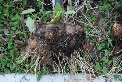 ところで、親芋を順方向に植えたもの1株(2本立ち)も今日収穫している。その結果は、明日のブログで報告しよう。今日報告した親芋を逆さ植えした場合の収穫量と比較することになる。