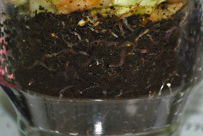 もうすぐ2週間、a,bともに非常に良い環境の様でみみず君はきわめて元気。今のところ差は出てない。冷凍してもしなくてもツクネ芋の髭はとてもよいみみず君のベッドのようだ。今後、食べ方に差が出るかどうか、どうでしょう?