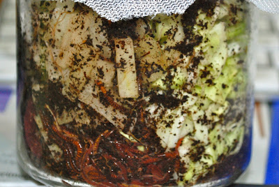 まず、昨日の食べ物試験の経過1日目の報告。予想に反してみみず君たち大根に集中。その次がキャベツ。ハンディをつけた新聞紙が一番出遅れている。