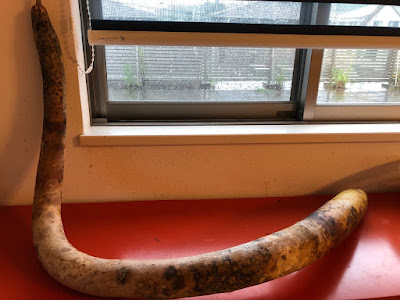 今年は、この137cmのズッキーニと、もう一本の真っ直ぐに伸びた120cmのズッキーニをオブジェとして残したかったのだが、真っ直ぐ伸びた1本は残念ながら一部が腐れて割れてしまったので、オブジェにはできなかった。