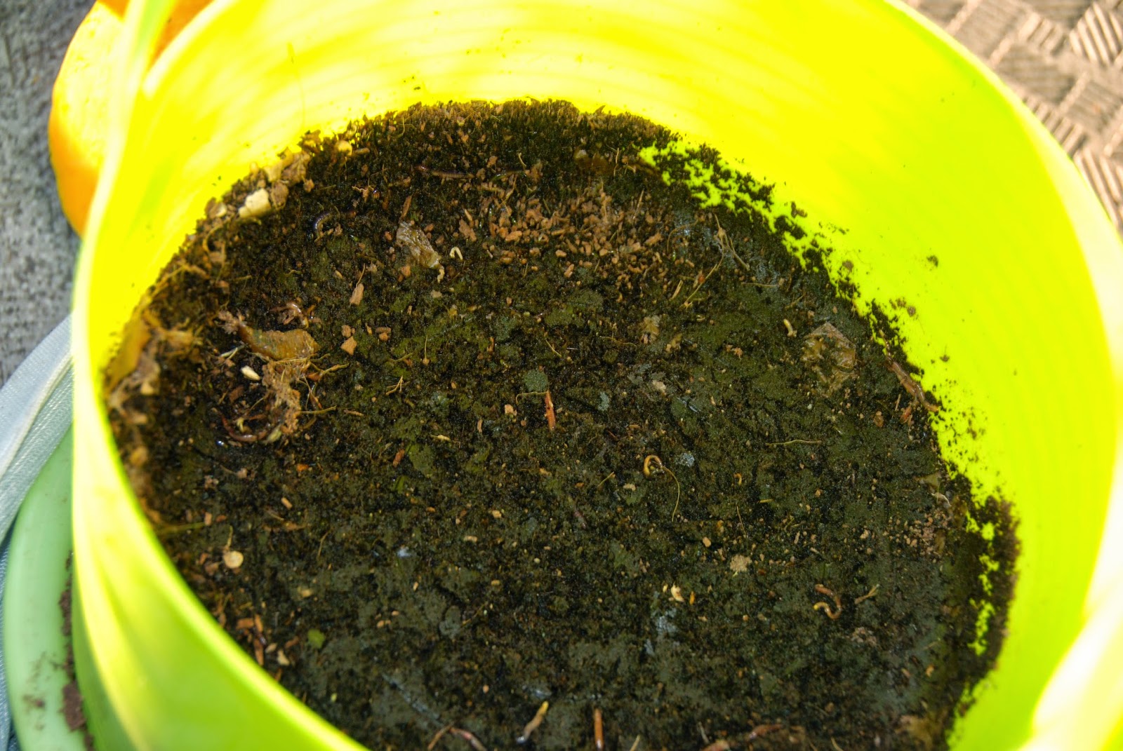 それぞれのバケツ容器の底にはミミズ君が容易に移動出来るような穴を多数開けている