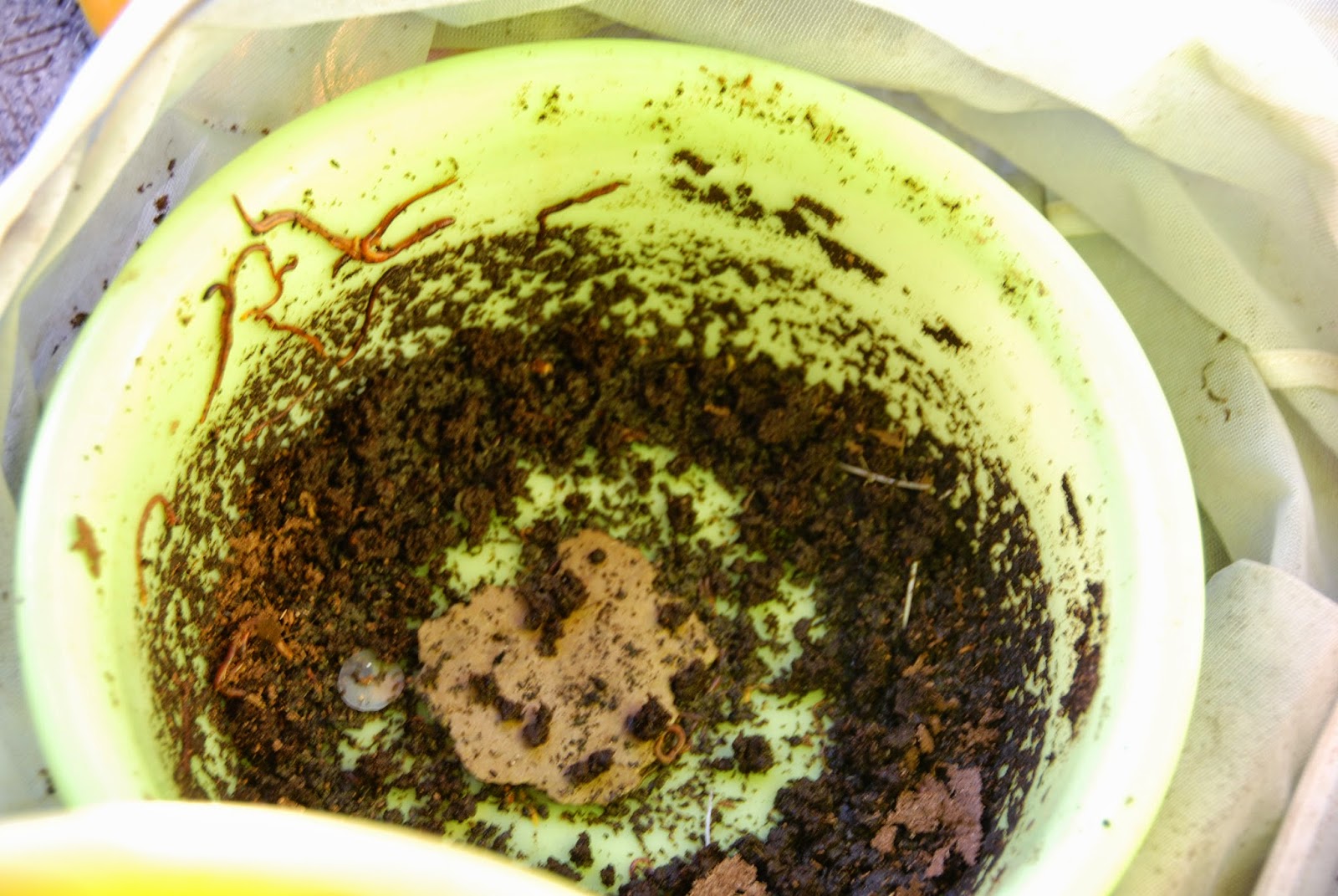 今回は、液肥はなく、少しウェット気味の堆肥やダンボールと一緒にミミズ君が約200匹居た。ここにいるミミズは青年ミミズと大人ミミズが多い。