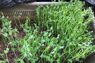 今年豆苗を作る条件は、去年の反省から遮光シートを2重にかけた半日陰だ。