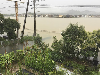 豪雨には対策なし。雨が止んでくれるのを祈るばかり。 野菜作り X Facebook Pocket LINE 2018.07.06 今日は全国的に豪雨での被害が出ている。 我が家の仕事場や菜園近くも例外ではない。 田んぼも、川も、道路も一面大きな湖のようだ。 仕事場の道路は冠水で通行止め。 通行止めの道路ではトラックが立ち往生して、別のレスキュートラックが来ていた。 これ以上の被害が出る前に、雨が止んでくれるのを祈るばかりだ。