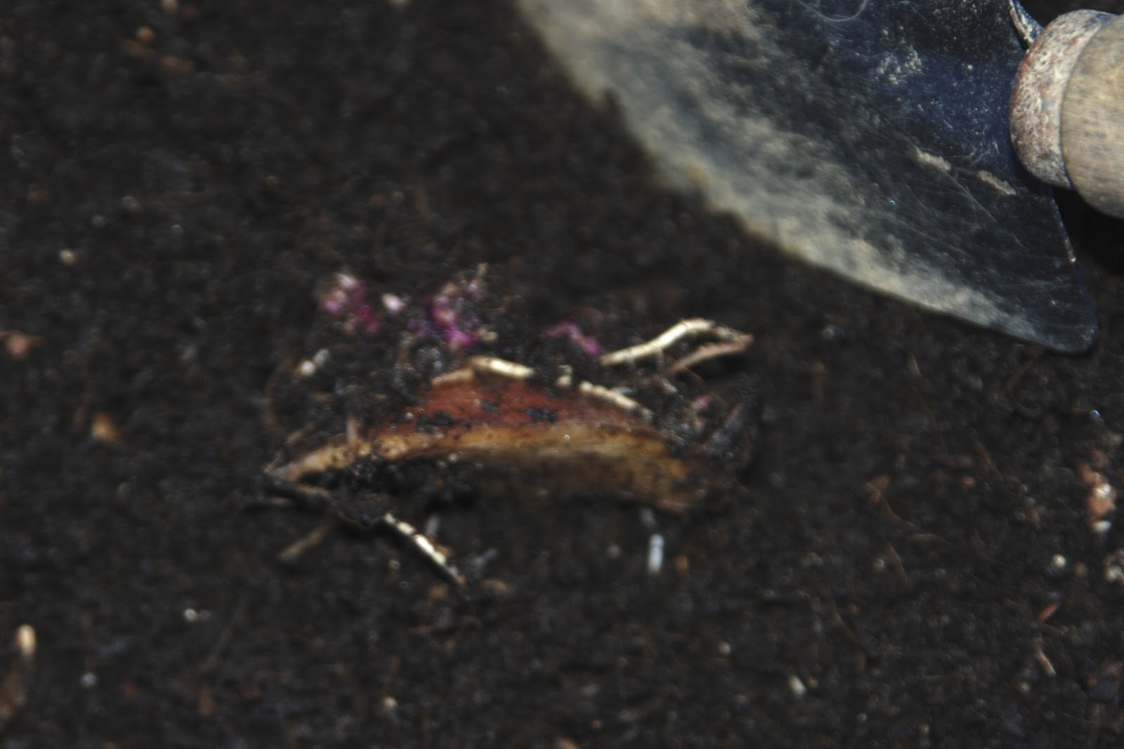 その芋の切れ端はこれまで最も芽出し状況がいいミミズ堆肥に数日間入れておいた。