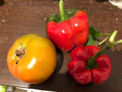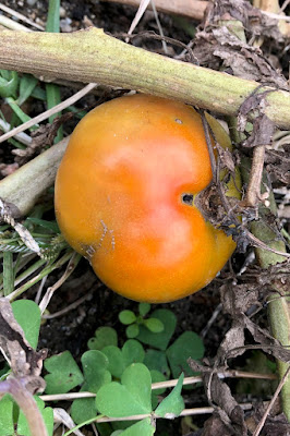 それでも、赤とは言えないが少し色づいていたトマトが1個あったので久しぶりに収穫した。
